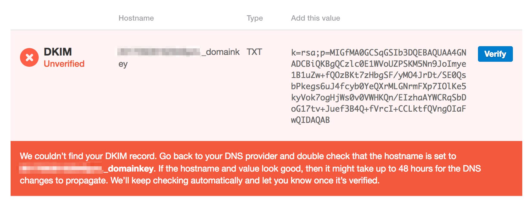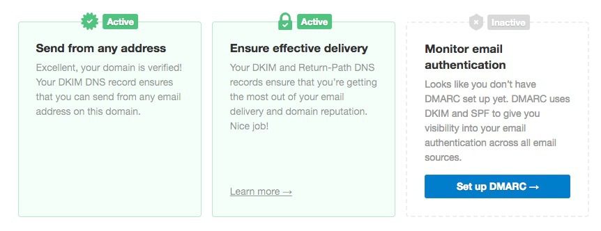 The first thing you’ll see is that we now have a much cleaner and easier-to-understand layout for the records you need to add to DNS to authenticate your domains for sending.