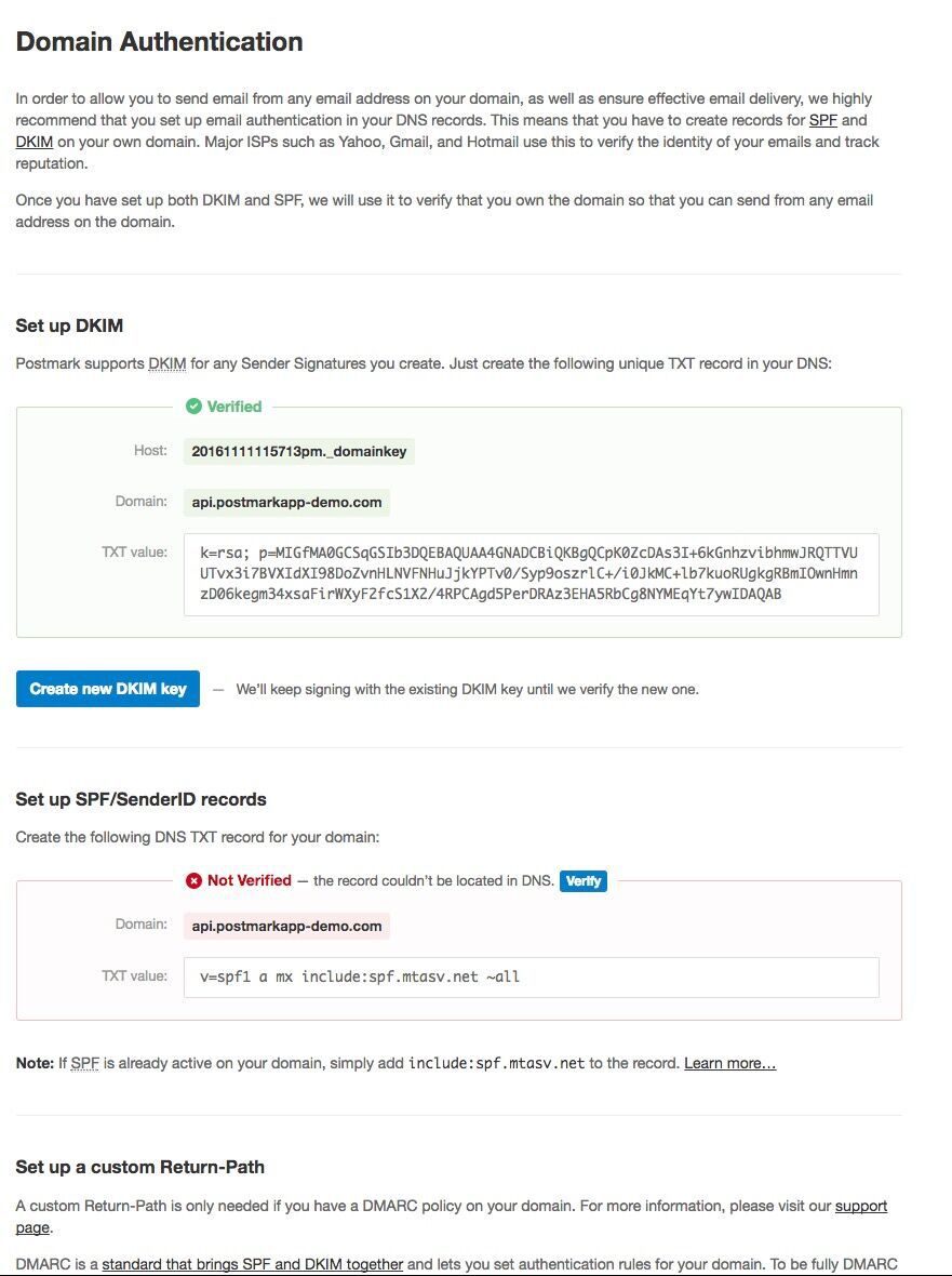 The Return-Path domain is now used by receiving email domains to check for SPF alignment. This means your emails sent through Postmark will always pass SPF by default, without any action on your end, since the Return-Path of all emails sent through Postmark already includes our outbound sending IPs and SPF record.