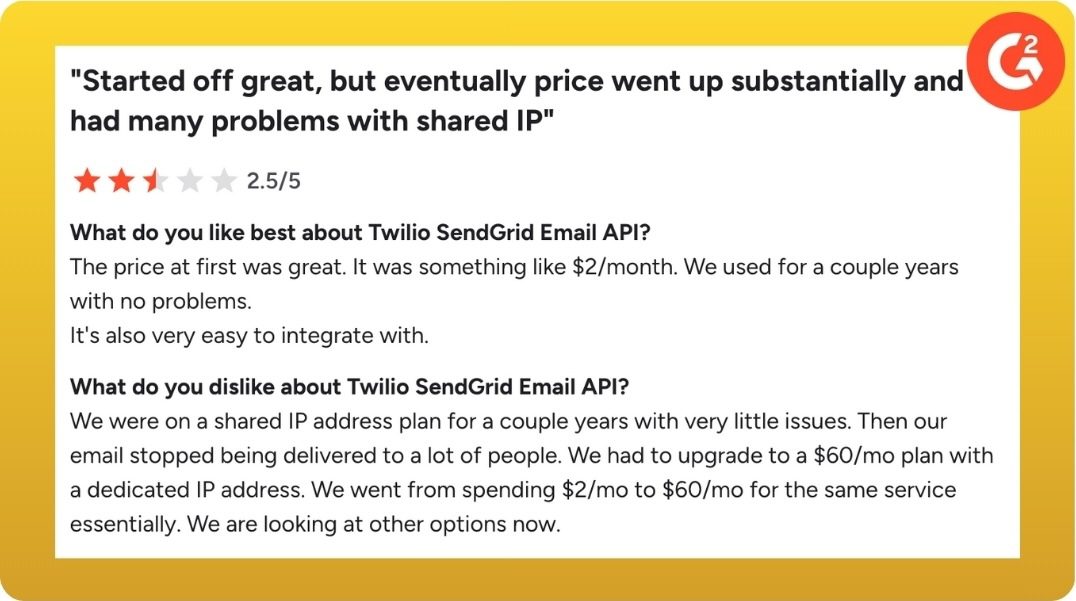 - Choose your support levelââslowâ or âexpensiveâ: Since its acquisition by Twilio in 2019, some customers are complaining about frustrating customer support experiences. Premium support is availableâbut that costs extra.
