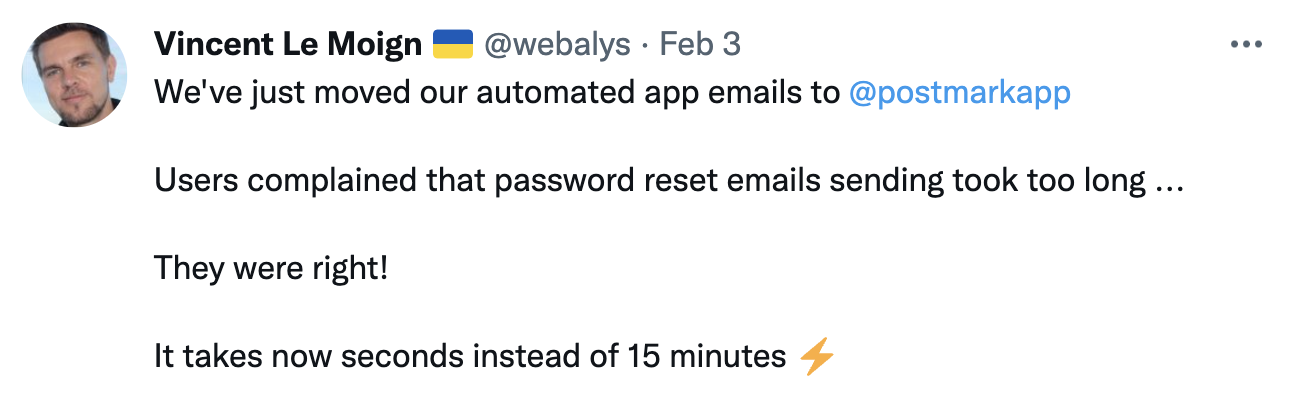 Switch to Postmark and get everything you’d want if you were building out your own email infrastructure.