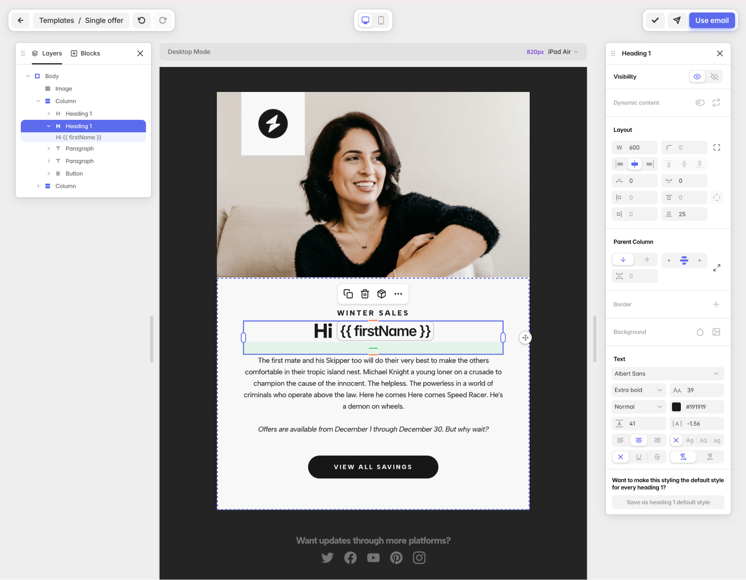 - Learn more about the Tabular email template builder