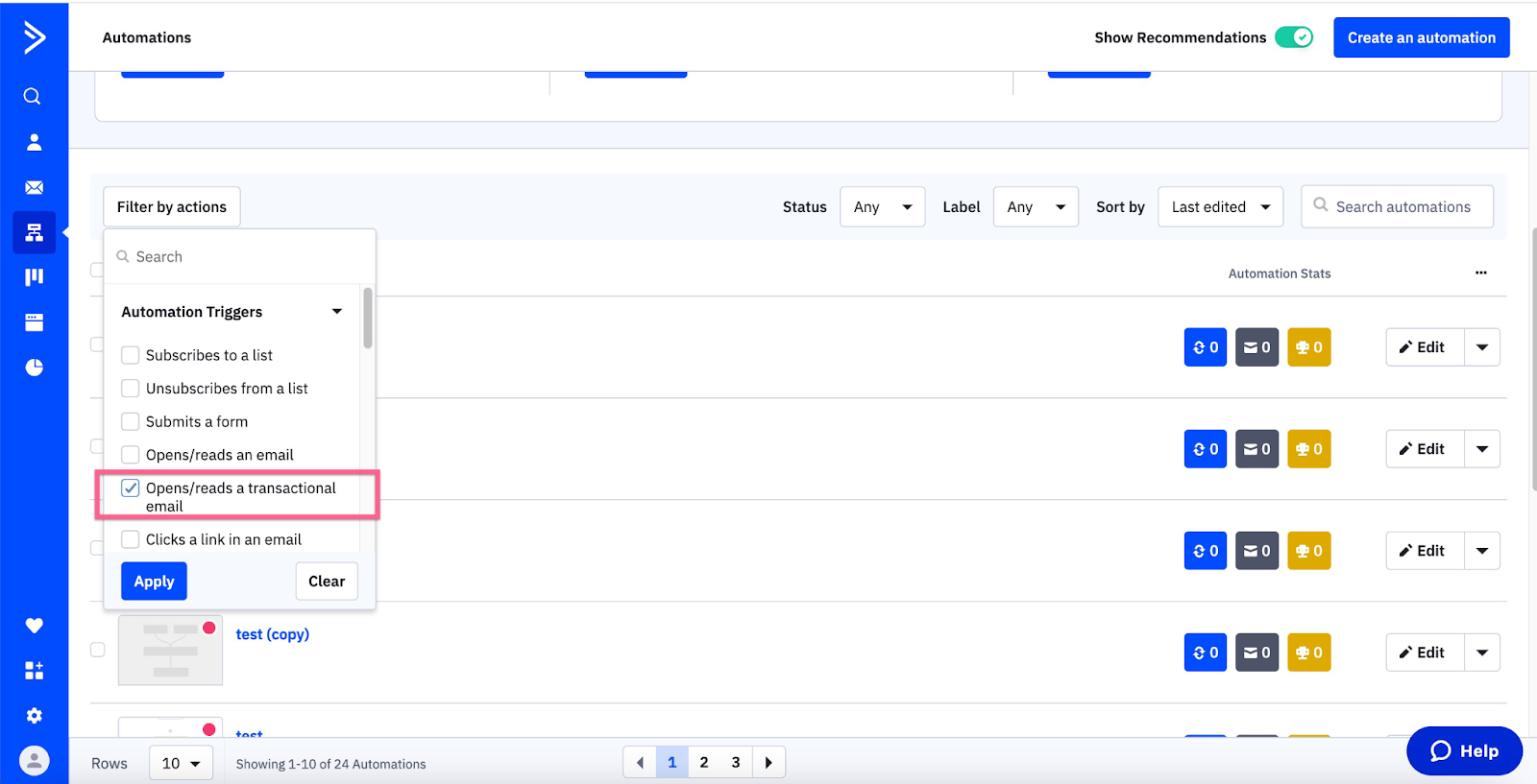 This trigger allows you to easily unify messaging coming from marketing, sales, and transactional emails. For example, you can use the Opens/Reads a Transactional Email trigger to: