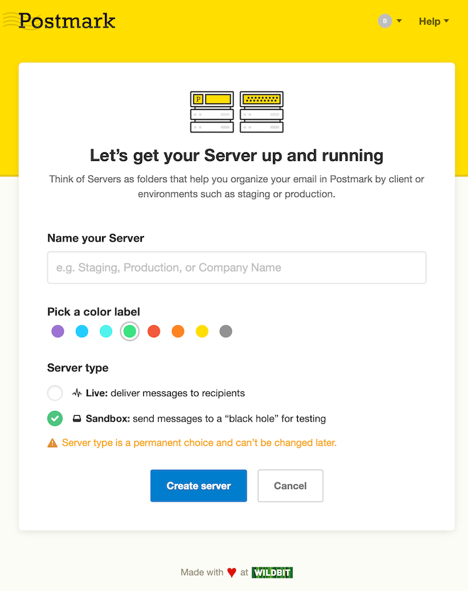 When setting up a new Server in Postmark, you can now mark it as a Sandbox—that’s an environment for you to test Postmark’s API and SMTP sending functionality and see how we process mail. But the trick is: We deliver all your test messages to a black hole ⚫️ and won’t ever send any actual email to a recipient.